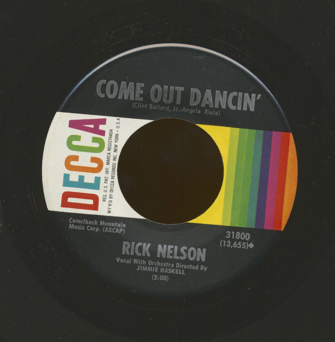 Rick Nelson Come Out Dancin' - Yesterday's Love (7inch, 45rpm, PS)