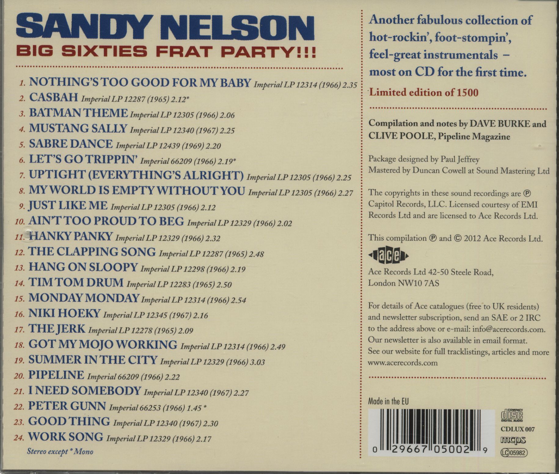 Propriétés de l'article: Sandy Nelson: Big Sixties Frat Party! (CD)