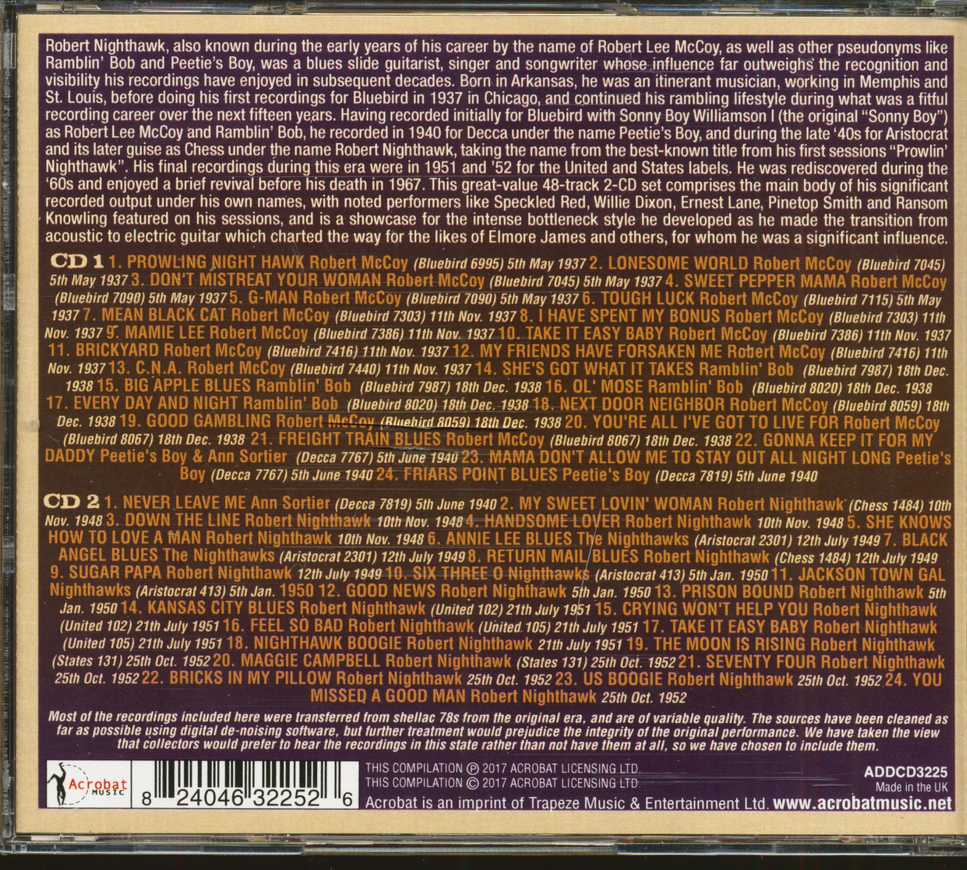Titre de l'album: The Robert Nighthawk Collection 1937-52 (2-CD)