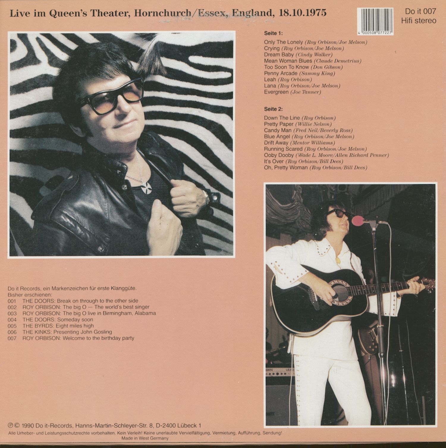 Le seul single de langue allemande d'Orbison est le méga-Rarität- les deux titres originaux étaient übersungen de la ligne de production de Wolf Kabitzky le 06.09.1963 dans le studio de Hambourg Teldec dans la route de Pâques avec des paroles en allemand. 1987 a été enregistré'The Big O' dans le Rock and Roll Hall Of Fame.