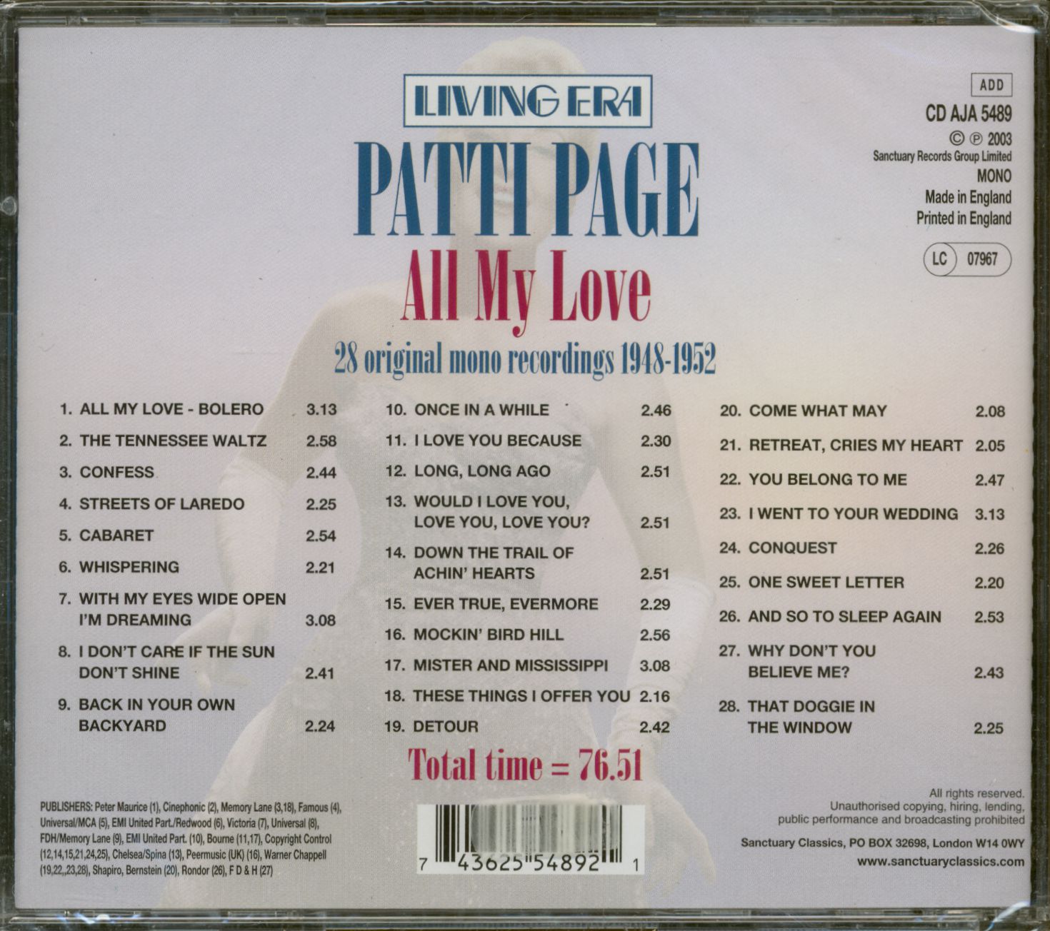 Patti Page All My Love (CD)