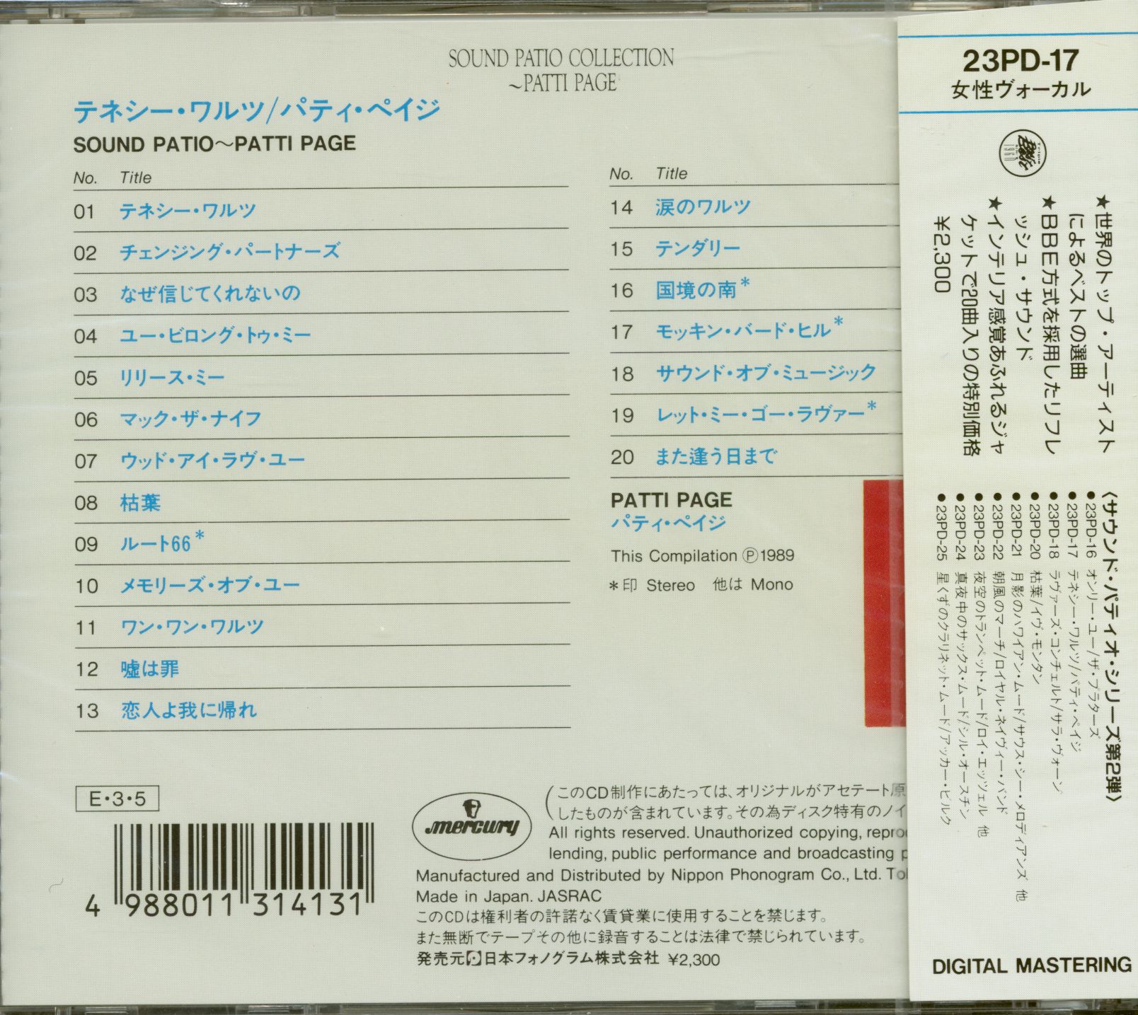 Patti Page Sound Patio Collection (CD, Japan)