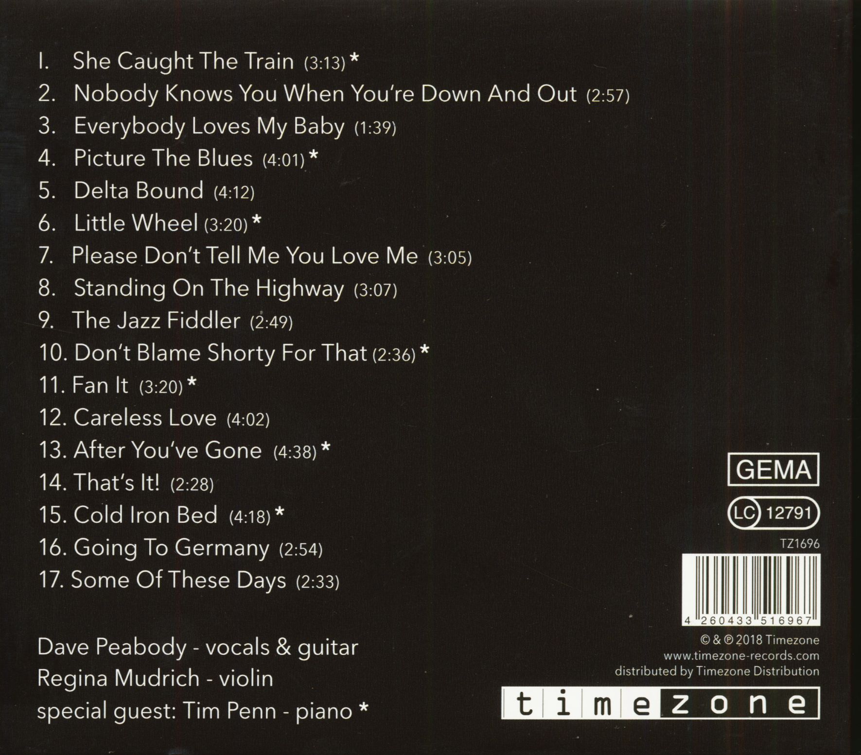 | 02 | Nobody Knows You When You're Down And Out | Dave Peabody & Regina Mudrich |