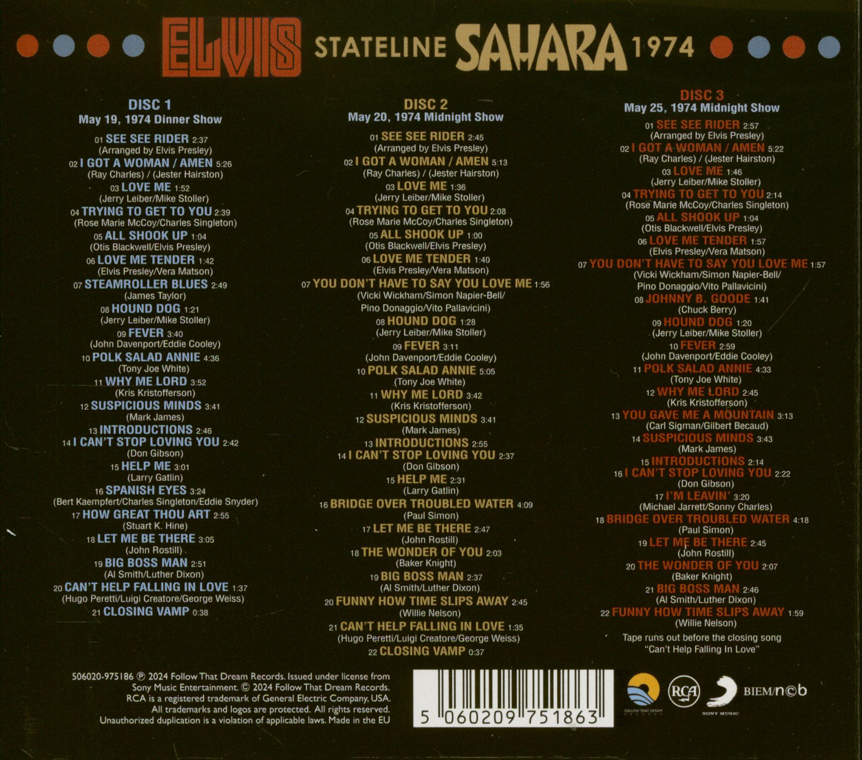 | Presley, Elvis - Stateline Sahara 1974 (3-CD) CD 1 | ||||