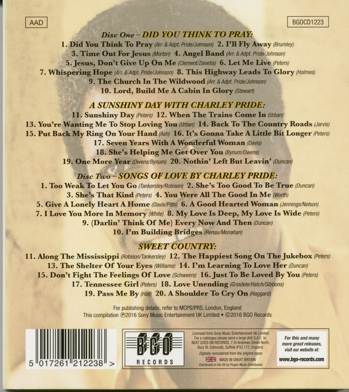 Charley Pride Did You Think To Pray/A Sunshine Day/Songs Of Love/Sweet Country (2-CD)