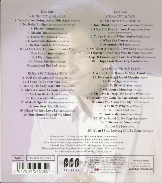 Propriétés de l'article:Charley Pride: You're My Jamaica - Roll On Mississippi - Charley Sings Everybody's Choice - Charlie Pride Live (2-CD)