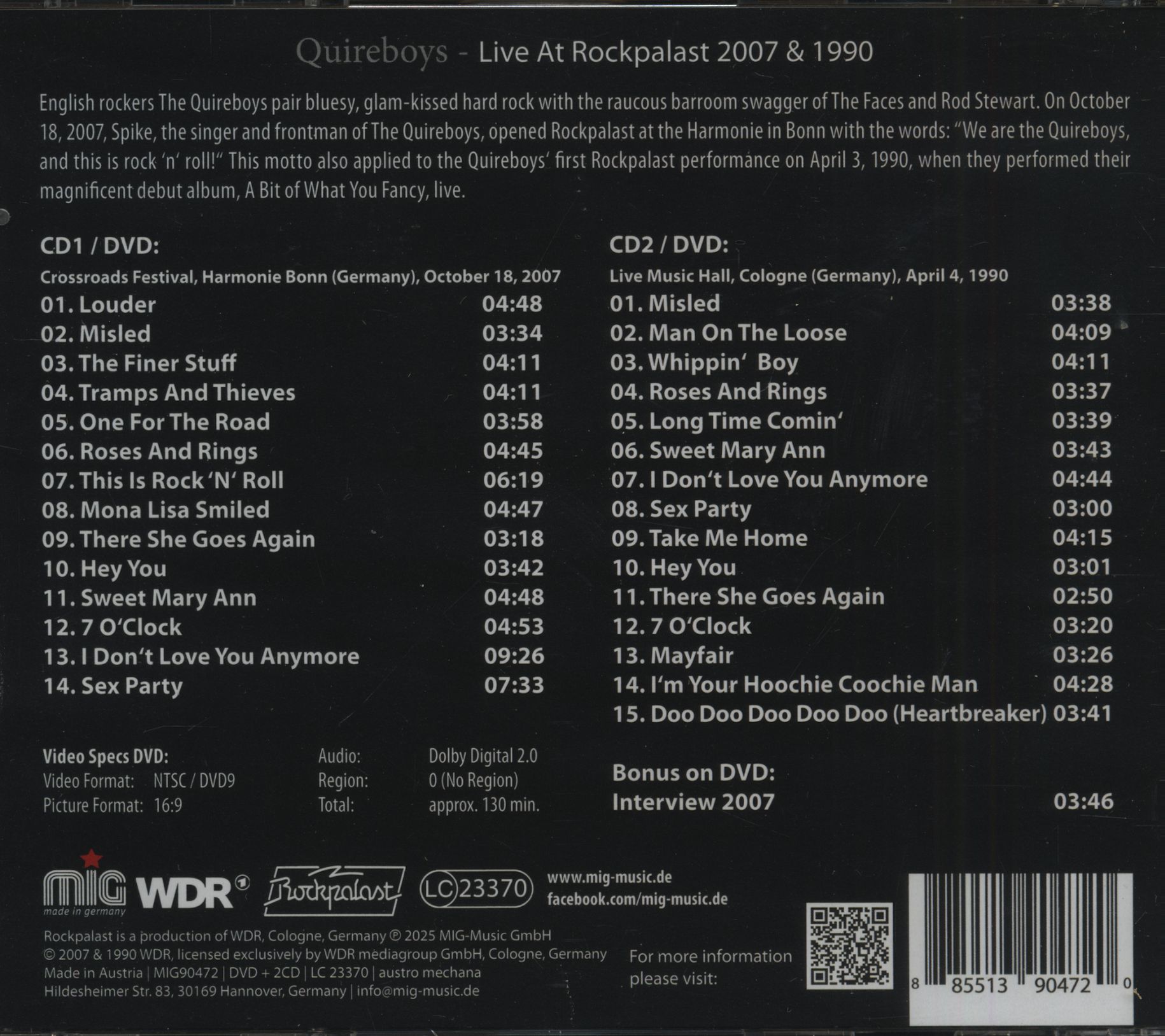 | Quireboys - Live At Rockpalast 2007 & 1990 (2-CD + DVD) CD 2 | ||||