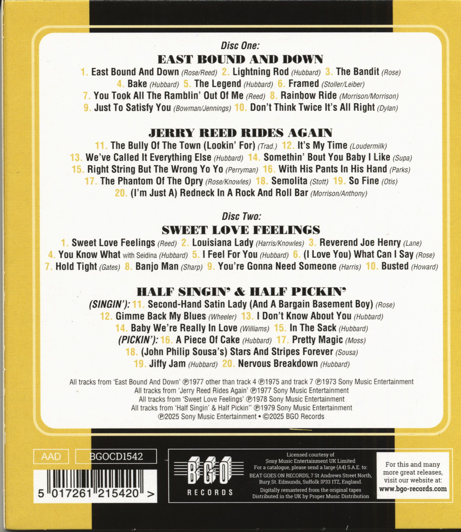 Jerry Reed East Bound And Down - Jerry Reed Rides Again - Sweet Love Feelings - Half Singin’ & Half Pickin’ (2-CD)
