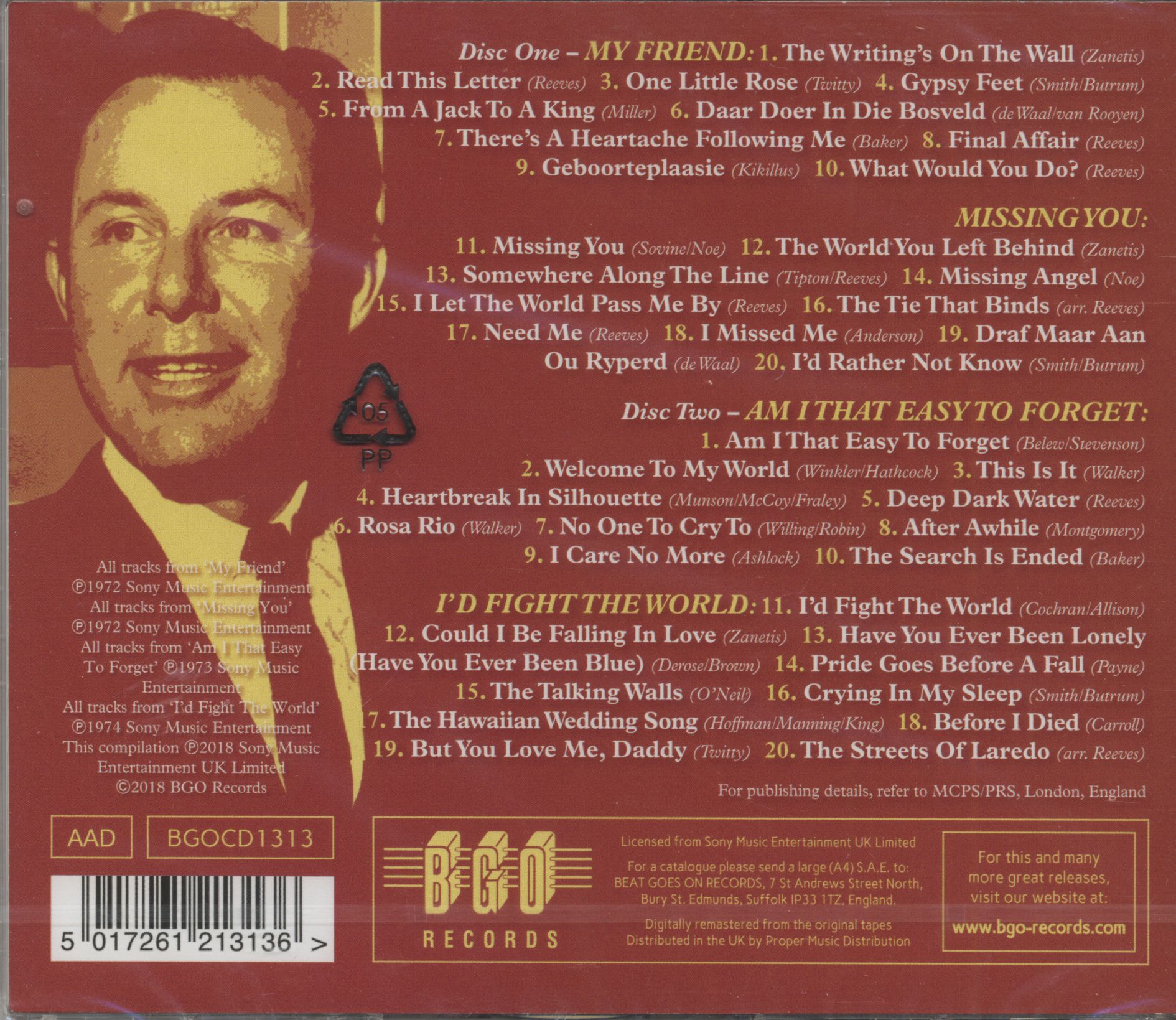 Jim Reeves My Friend - Missing You - Am I That Easy To Forget - I'D Fight The World (2-CD)