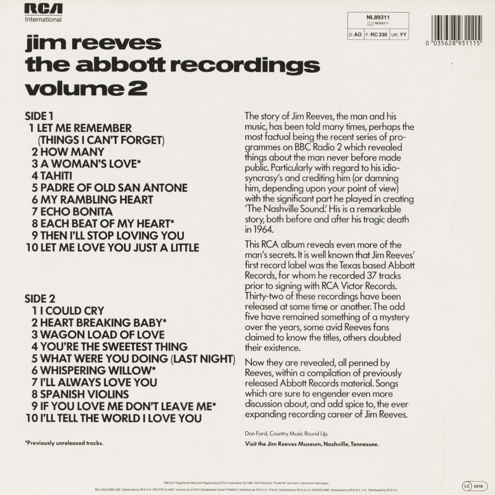 Jim Reeves The Abbott Recordings Vol.2 (LP)