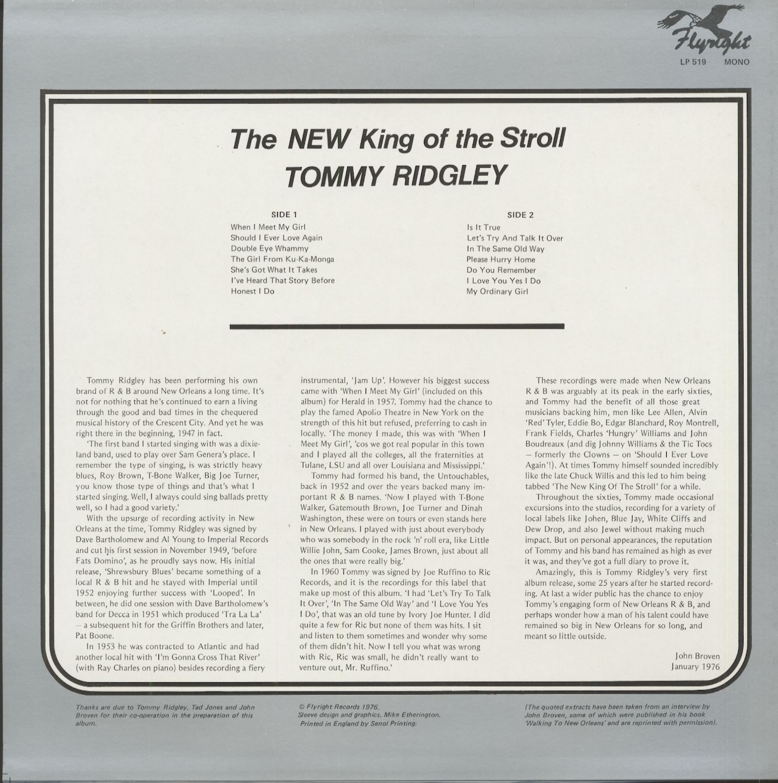 Tommy Ridgley The New King Of The Stroll