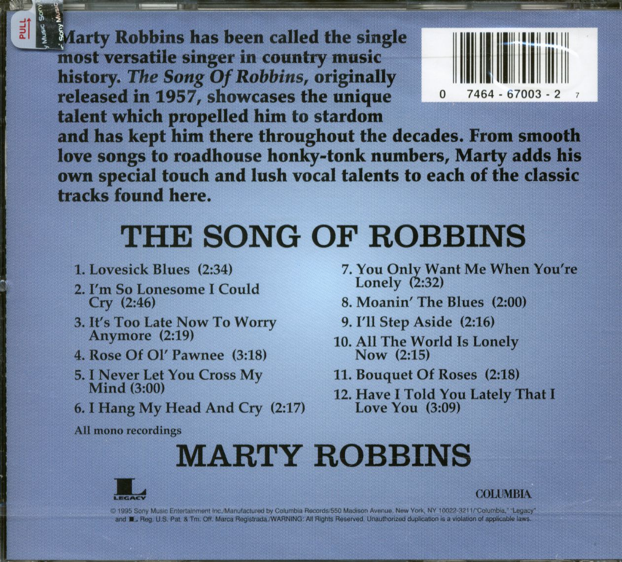 ROBBINS, Marty Song Of Robbins (CD)