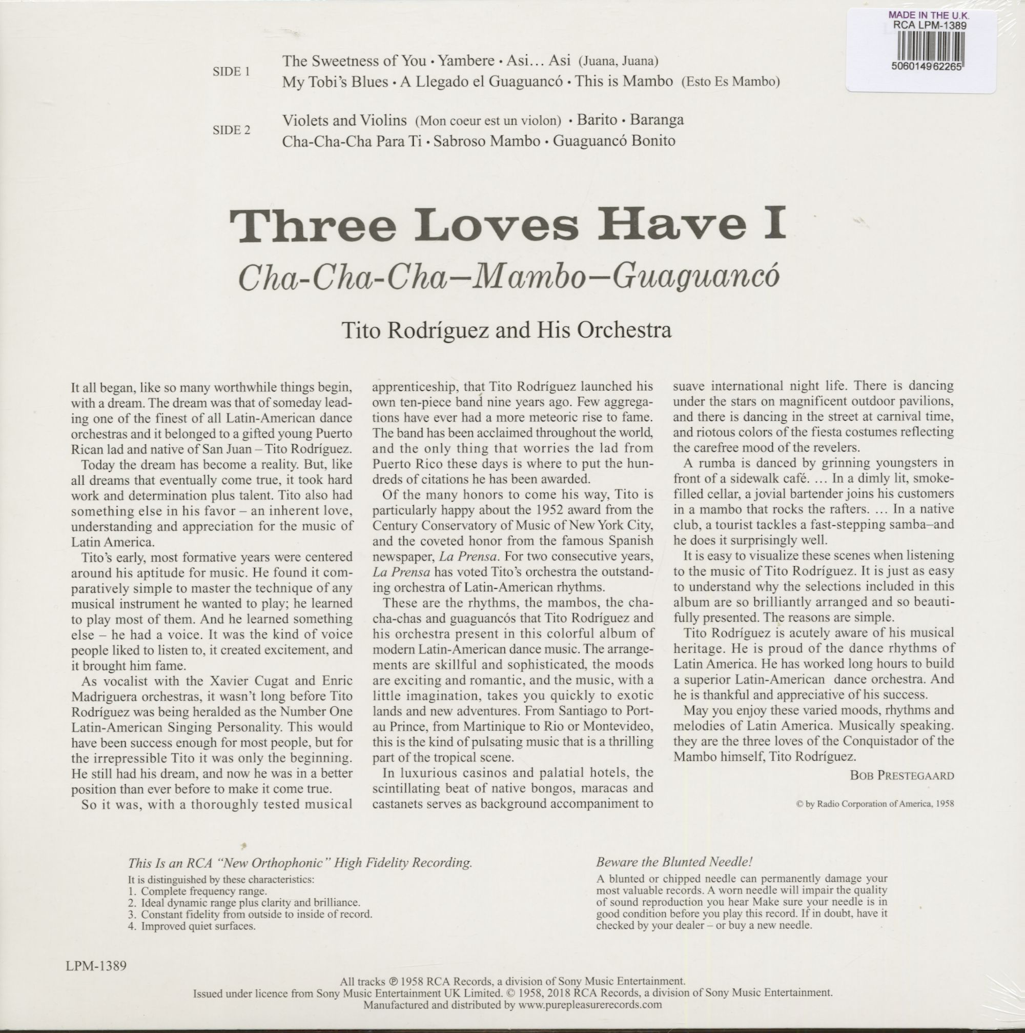 Tito Rodriguez Three Loves Have I - Cha-Cha-Cha, Mambo, Guaguanaco (LP, 180g Vinyl)