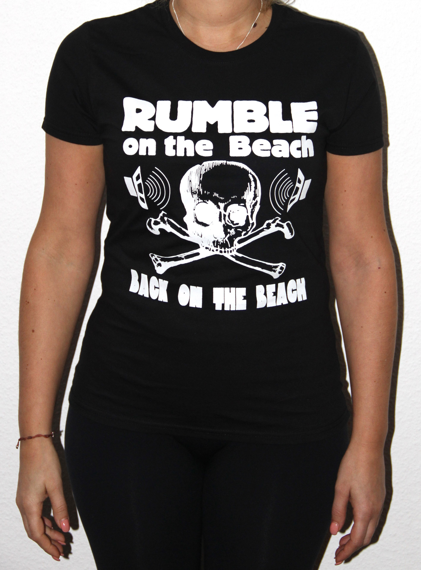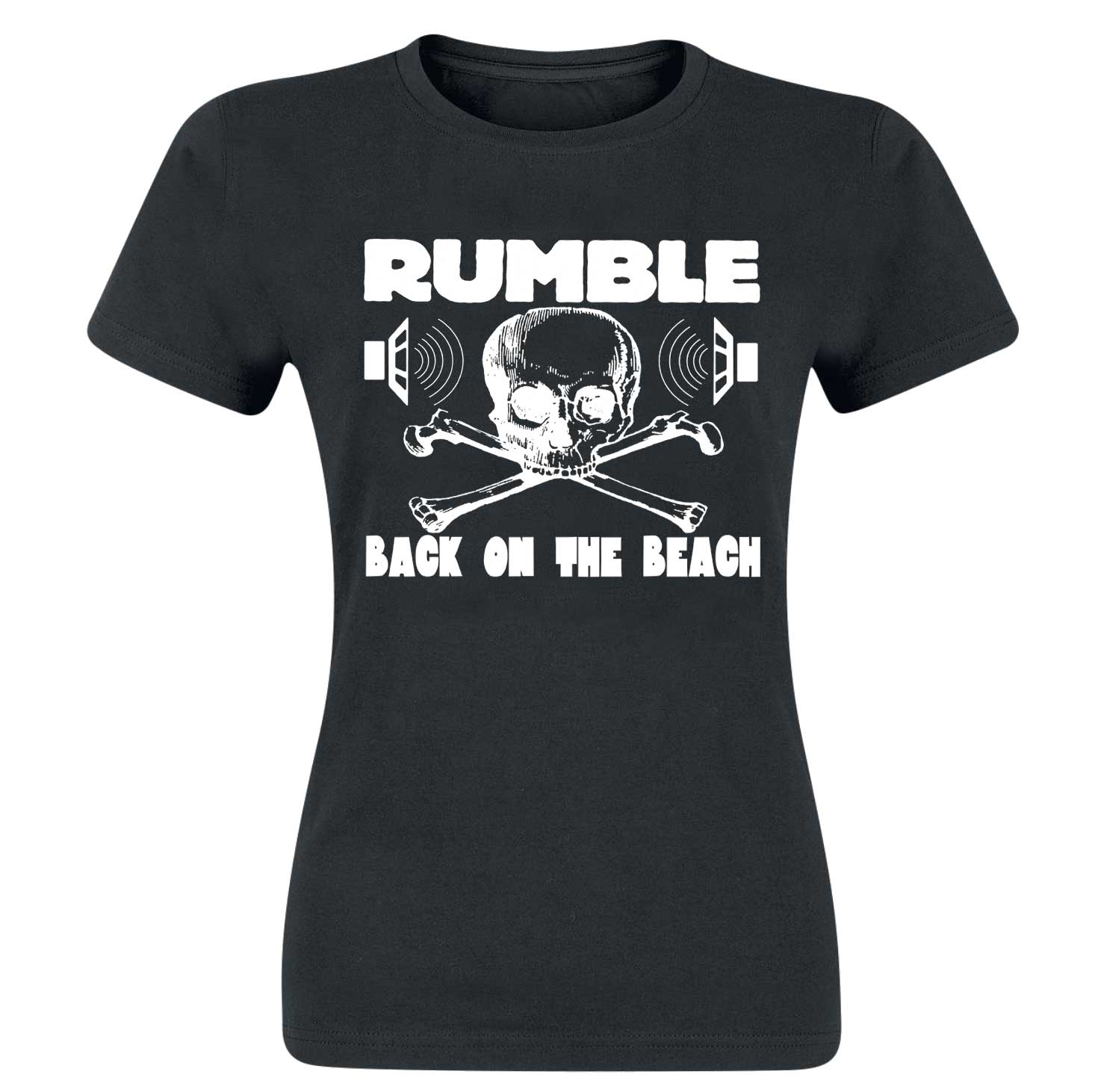 Rumble On The Beach Rumble Girlie Shirt, black, white print, size M