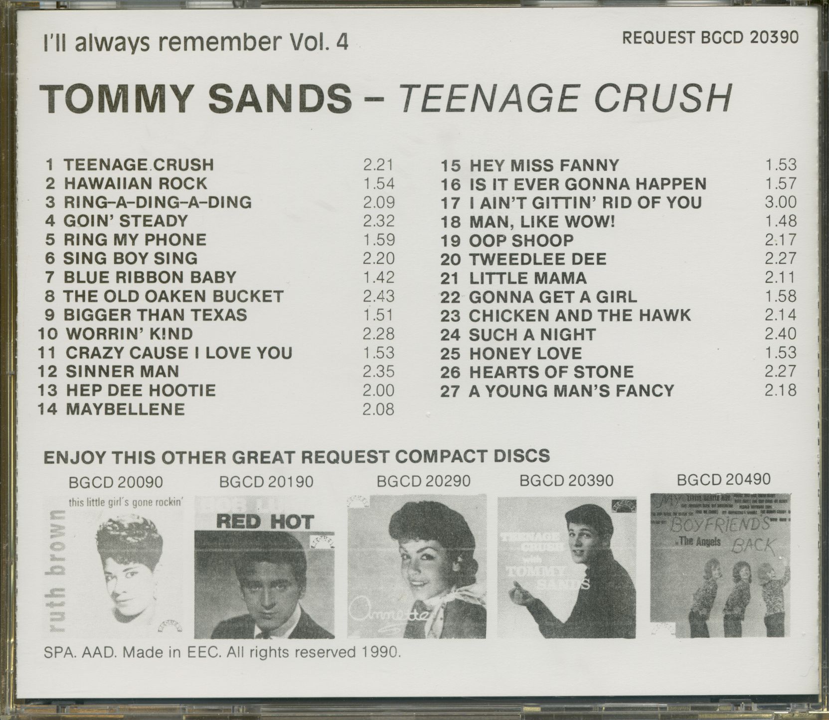 Tommy Sands Teenage Crush (CD)