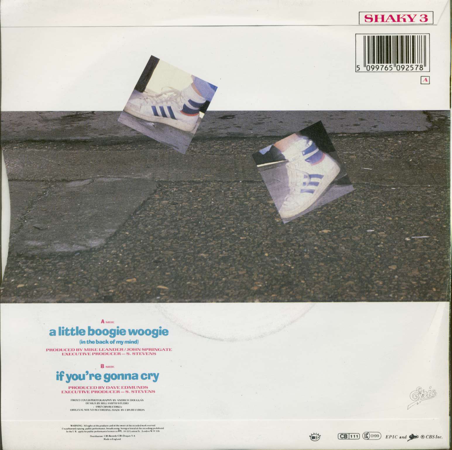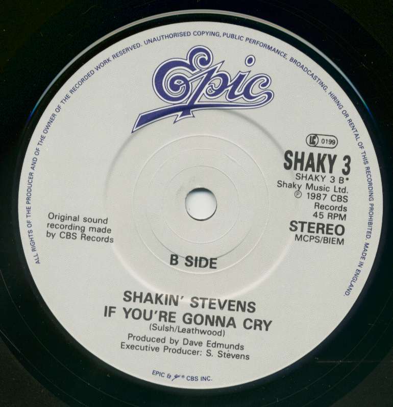 too poppy for my taste , nothing like shakin'stevens ,so i think Epic(label)was a bit too much invalved to make sure it would fit the top40. the b side : if you're gonna cry , is aballad but stil too poppy ,with a typical 1980's drums (electronic?)behind it `
