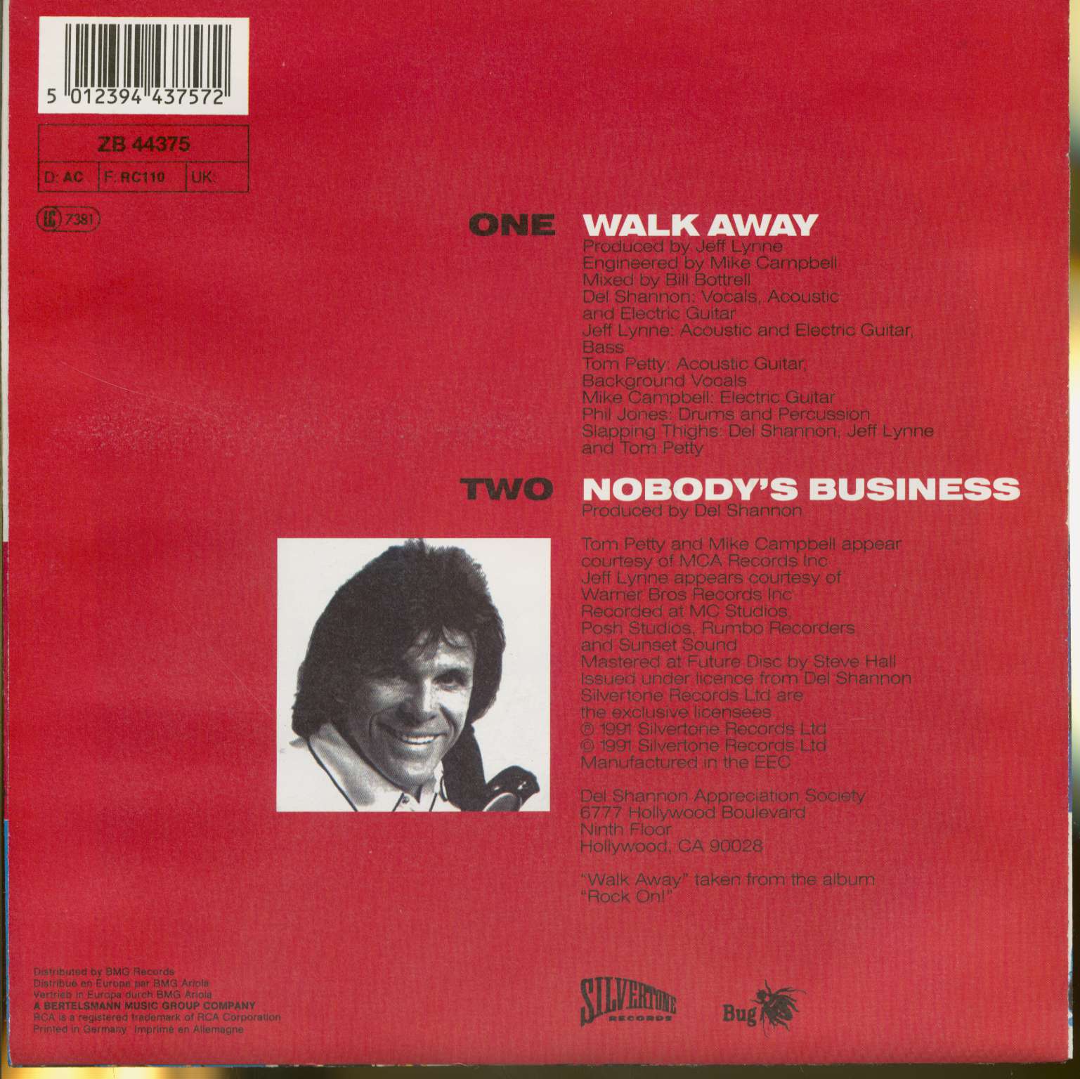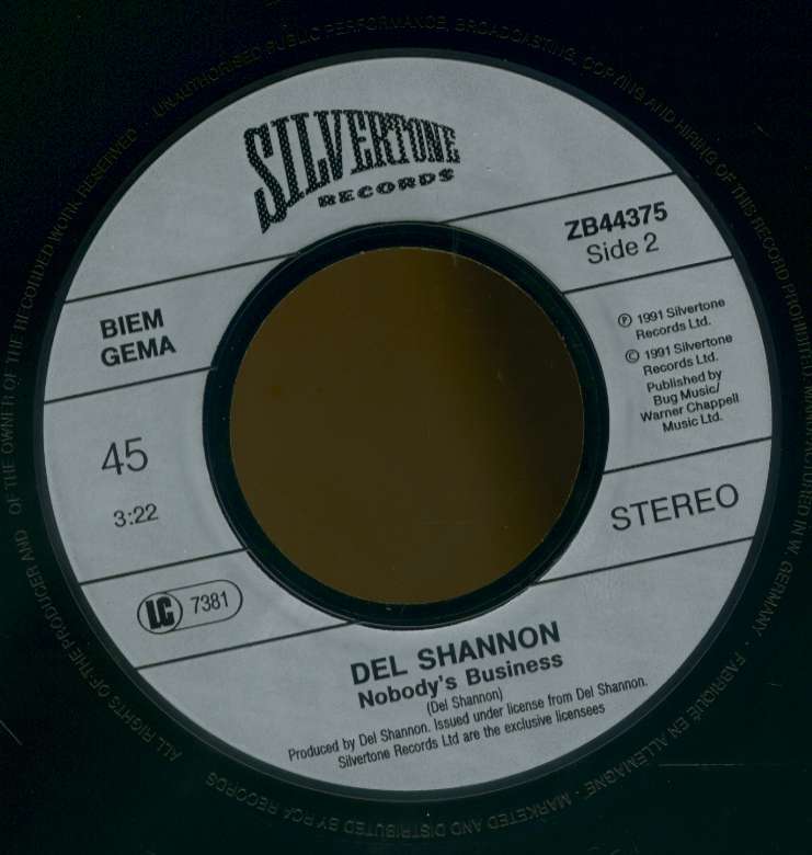 Del Shannon Walk Away - Nobody's Business (PS, 45rpm)