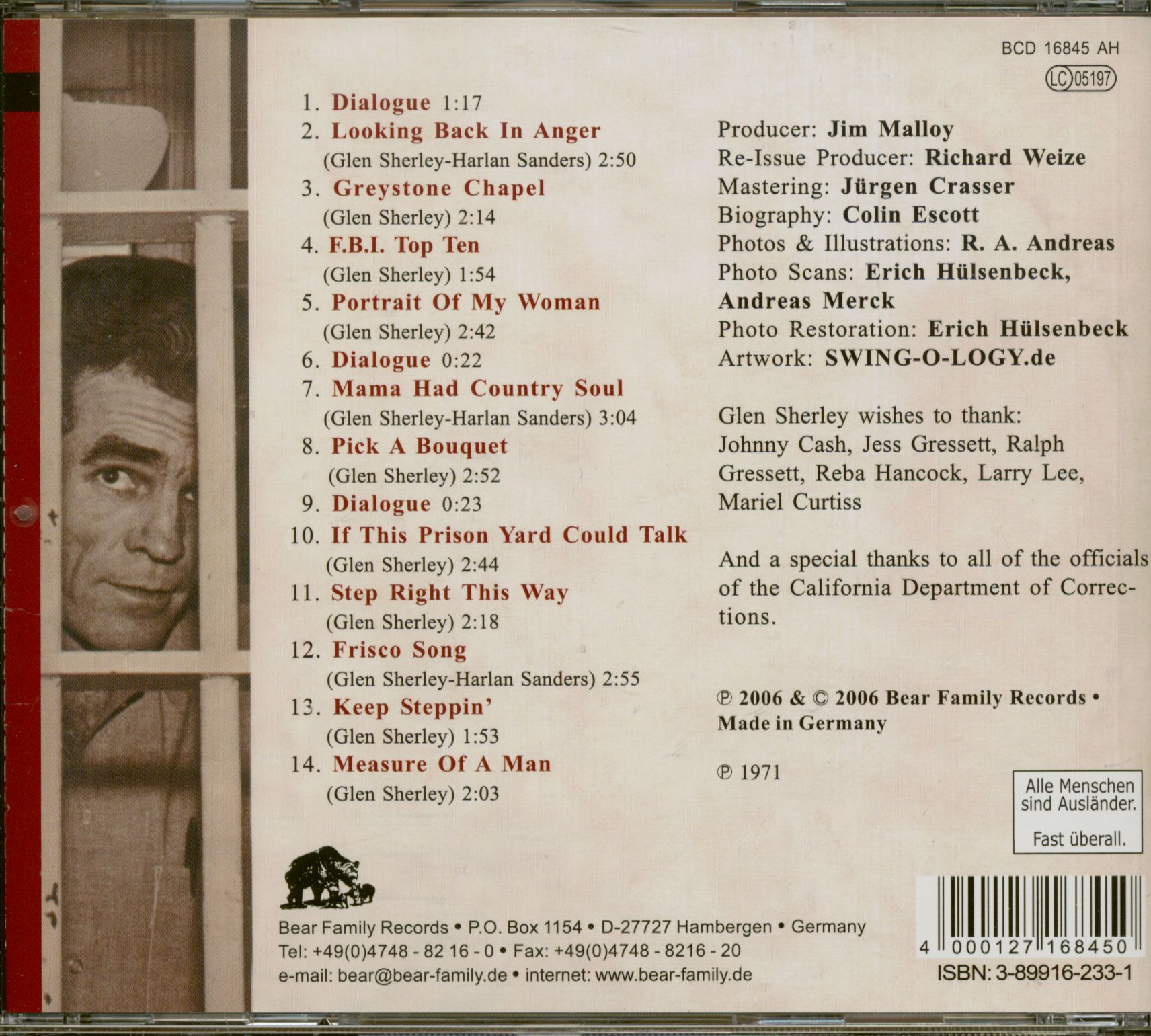 Just thirty-five years have elapsed, but all of the major participants in the short and tragic saga of Glen Sherley are no longer among us. The most tangible artifact is this record, itself unavailable for many years. Glen Sherley left us with little in the way of interviews and published recollections, but his record imparts a very sure sense of who he was and what he believed.