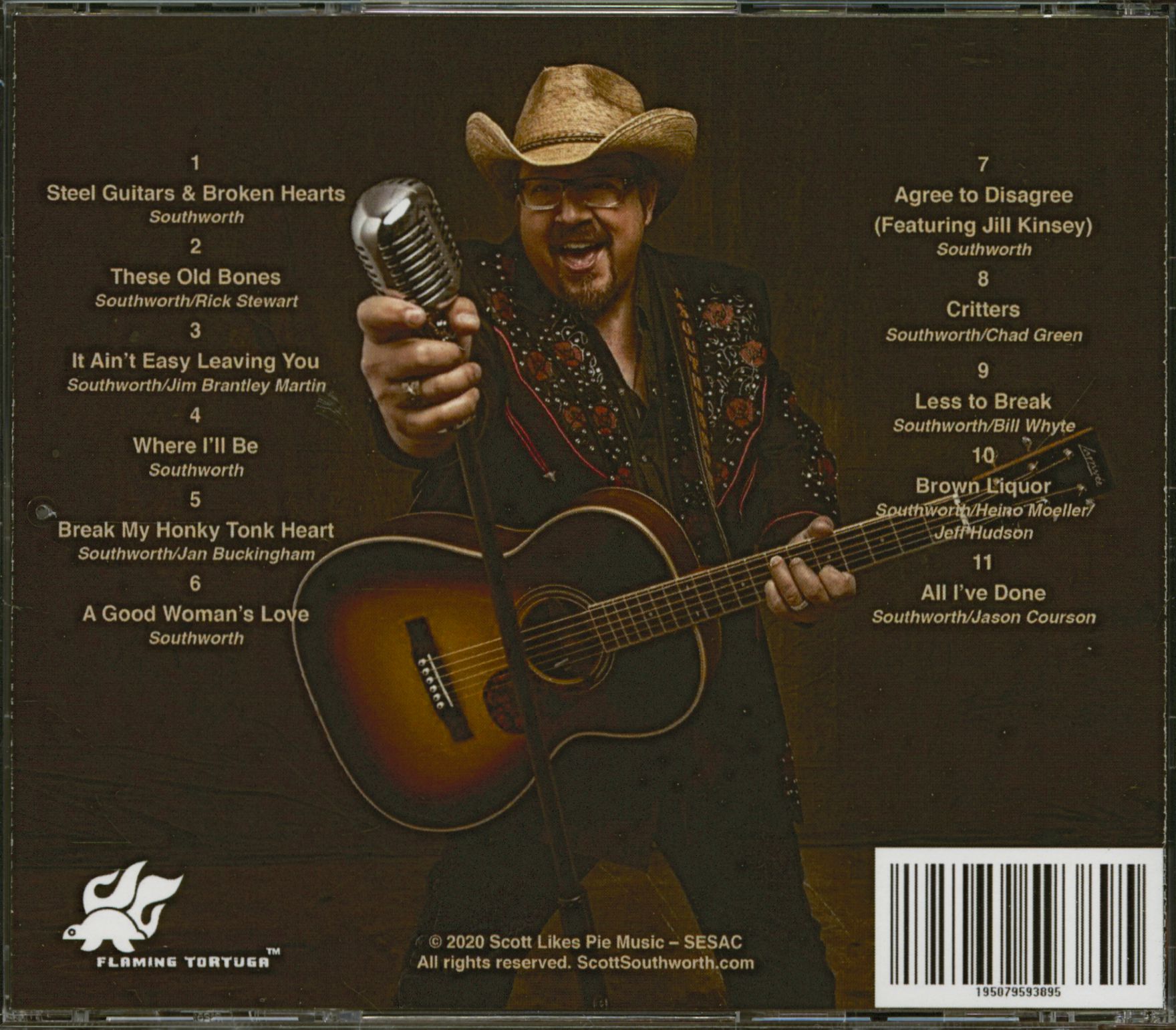 Plus d'originalité, Honky Tonk, musique country traditionnelle de Scott Southworth, chanteur primé de Hillbilly ! Il s'agit de sa première sortie sur le nouveau label indépendant Flaming Tortuga Records et continue à élever la barre fixée par les sorties précédentes "Hey Hillbilly Singer" et "The Last Honky Tonk In Town" !