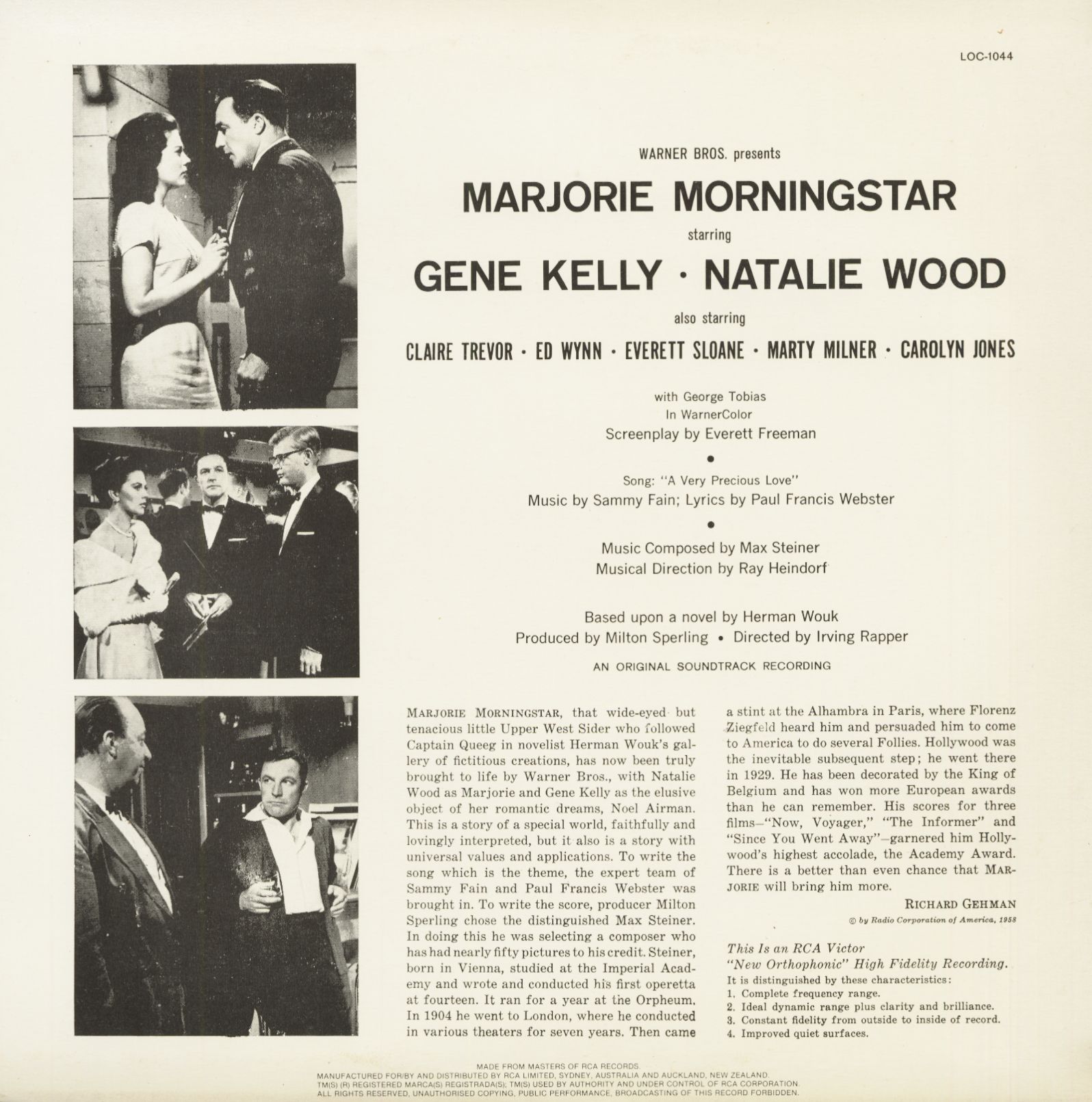 | Steiner, Max - Marjorie Morningstar - Soundtrack (LP) LP 1 | ||||