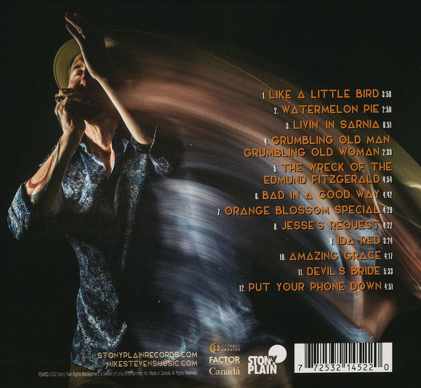 Mike joue de l'harmonica, prend la voix principale sur quatre morceaux et partage la vedette avec plusieurs invités de marque, dont les chanteurs Polly Harris et Cory James Mitchell, les guitaristes Kevin Breit, Jeff Getty et Jesse Wells, le batteur Art Hratchian et le bassiste Jeff Bird. Du bluegrass à la musique ouest-africaine, de la country au blues, des airs de violon aux paysages sonores et à la musique expérimentale, pour Mike, il s'agit simplement de respirer le monde et d'expirer la musique.