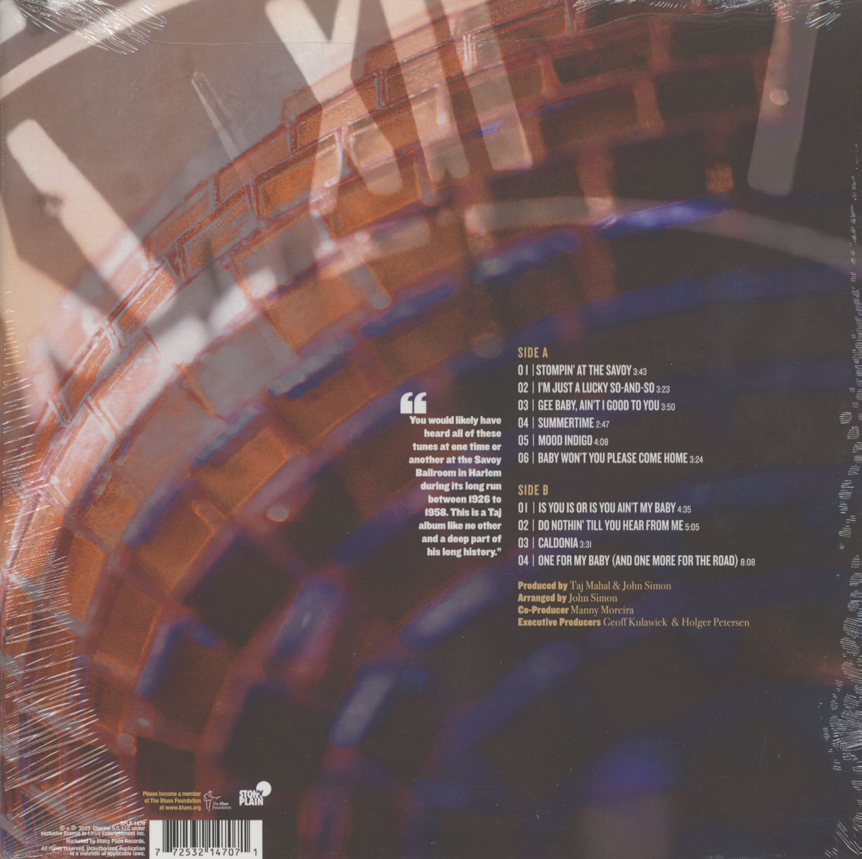 Il a remporté 3 Grammys sur 15 nominations, a été intronisé au Blues Foundation Hall of Fame et a reçu un Lifetime Achievement Award de l'Americana Music Association. Avec Savoy, Taj prend une nouvelle direction dans son voyage musical, en explorant les classiques du livre de chansons américain avec son bon ami et producteur de disques acclamé John Simon, qui a notamment produit les albums classiques de The Band, Leonard Cohen, Gordon Lightfoot et Blood Sweat & Tears.