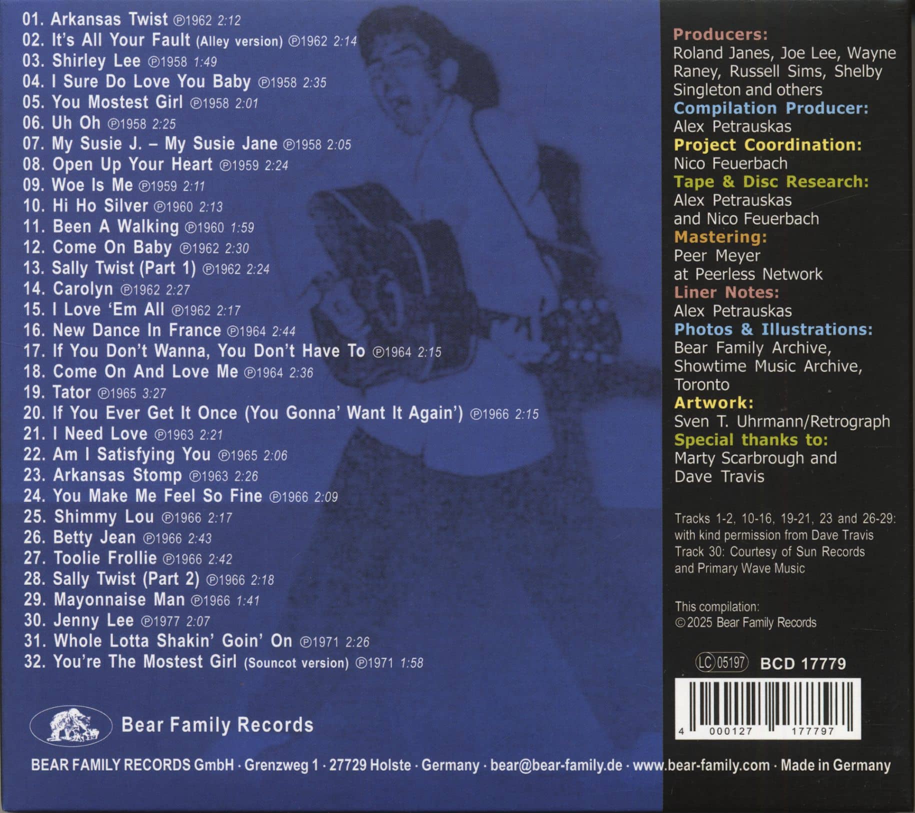 En 1957, avec Shirley Lee, Bobby Lee Trammell entre dans la légende du Rockabilly. Bear Family Records® lui consacre aujourd’hui un volume explosif dans sa célèbre série Rocks : Bobby Lee Trammell – Rocks réunit ses enregistrements les plus sauvages et les plus électrisants du Rock ’n’ Roll.