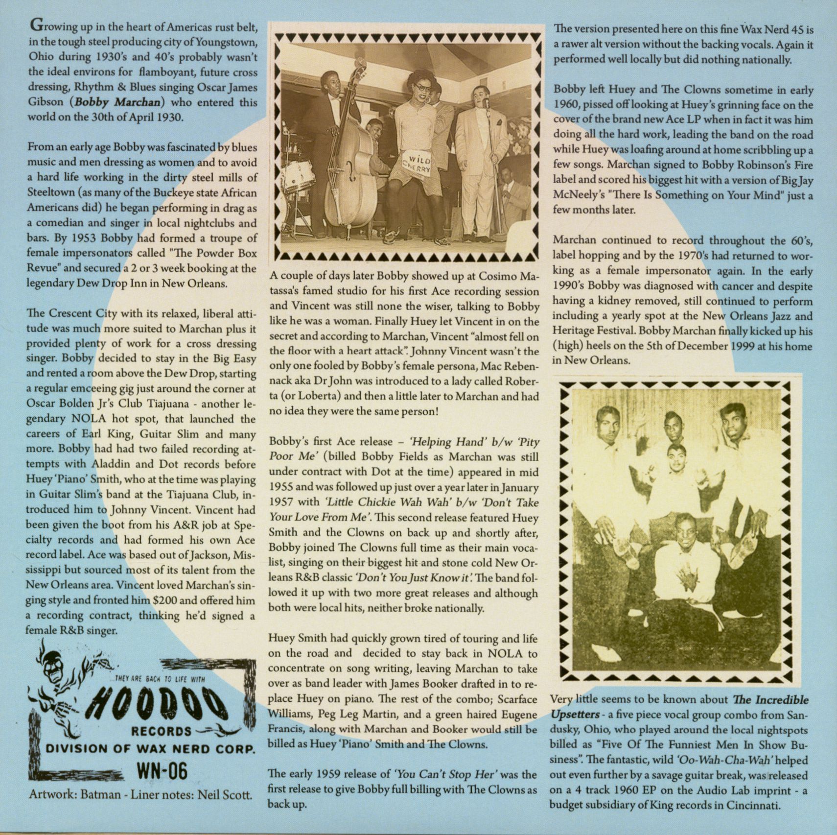 Propriétés de l'article: The Incredible Upsetters - Bobby Marchan: Ooh Wah Cha Wah - You Can't Stop Her (7inch, 45rpm, PS, BC, Ltd.)