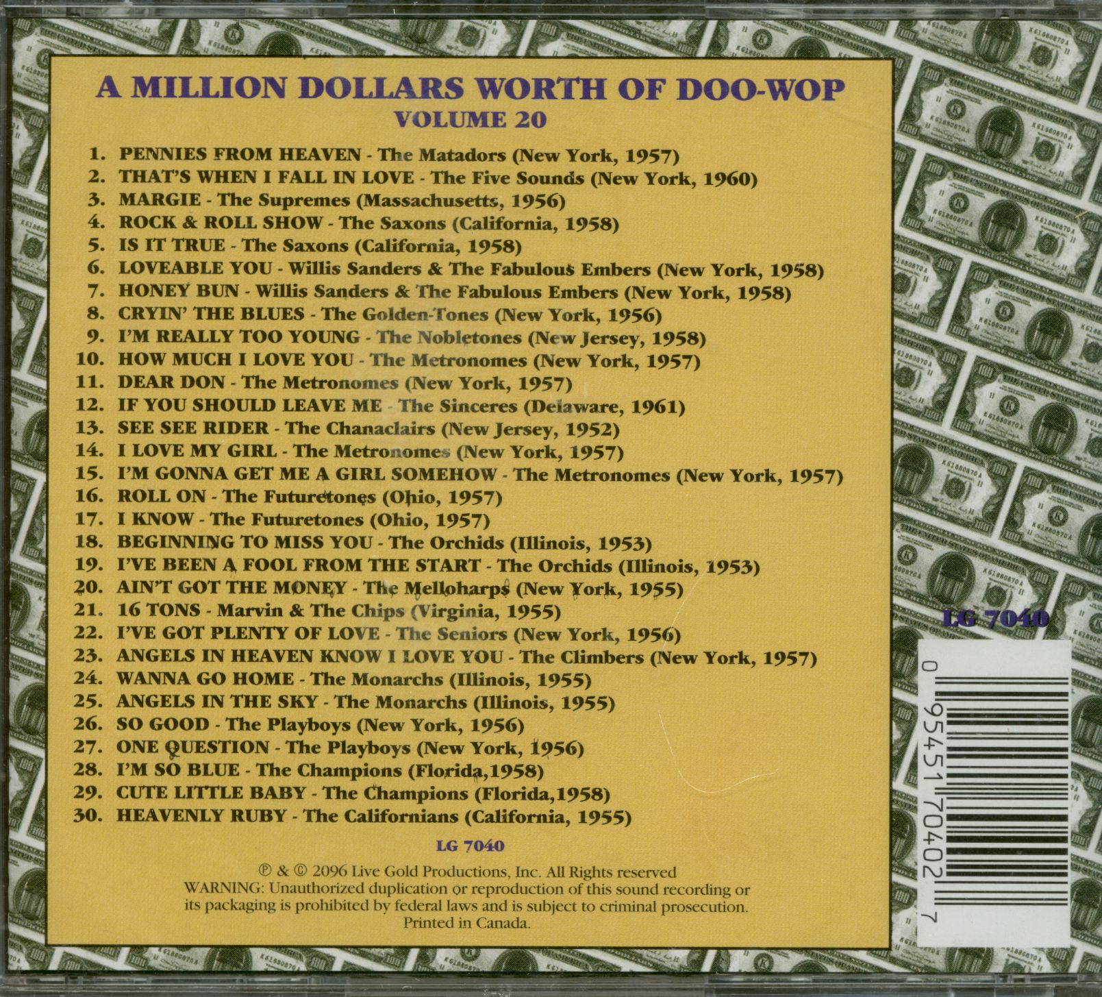 Various A Million Dollars Worth Of Doo-Wop Vol.20 (CD)