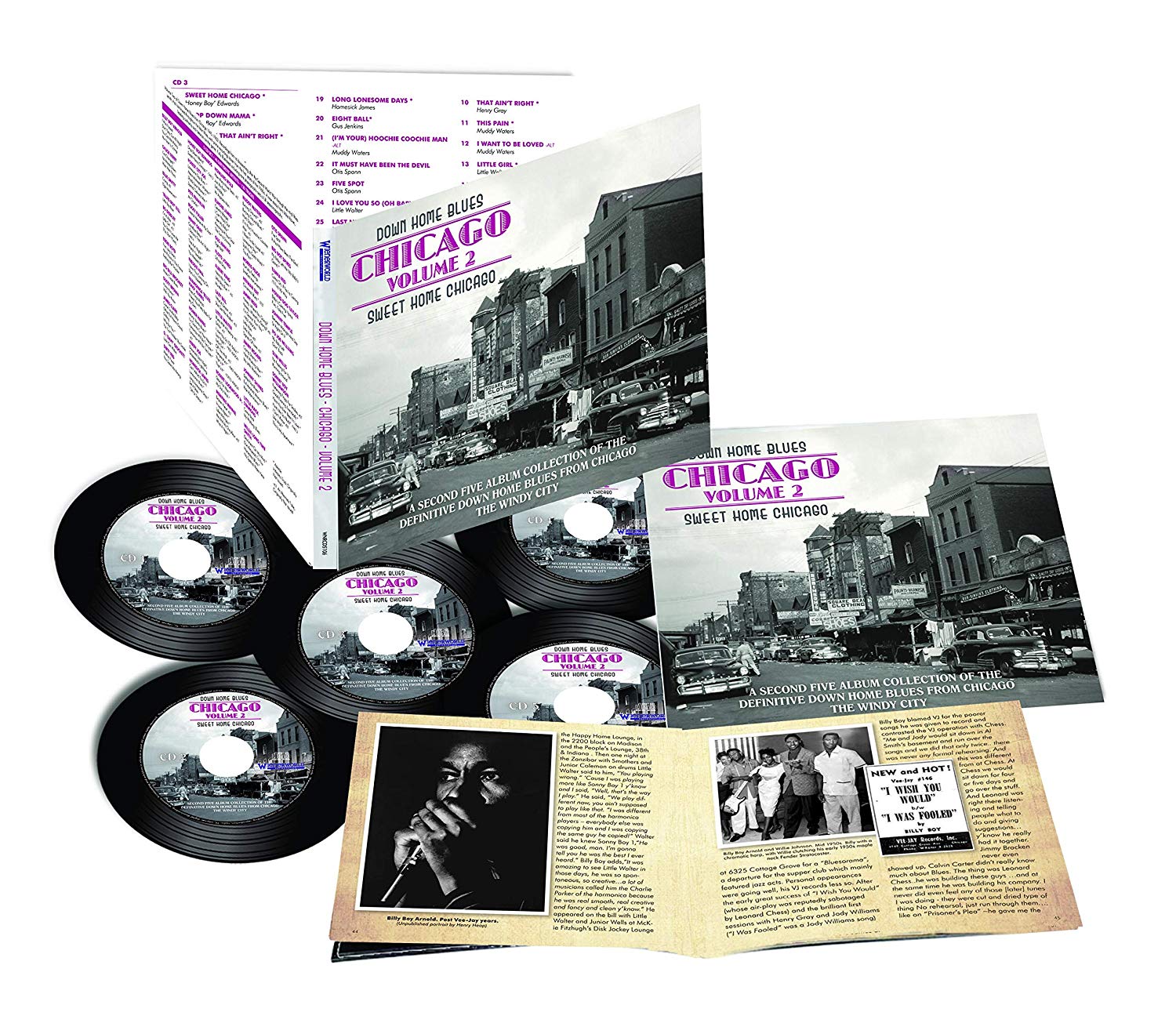 Tous les enregistrements de prises de vues inédites et alternatives proviennent de la collection privée de Peter Moody, dont plusieurs ne sont pas disponibles par ailleurs. Comprend un livre de 94 pages, avec un nouvel essai du célèbre historien du blues Mike Rowe sur la scène de Chicago après guerre ; sur cinquante rares photographies illustrant l'essai ; des détails complets des pistes, ainsi que la sessionographie complète. Une page de présentation sur certains des artistes et une galerie de cinq pages de 78 et 45 maisons de disques originales Poursuivant le mélange d'artistes connus et moins connus, tous les enregistrements sont des chefs-d'œuvre de Chicago de premier ordre. Avec de grands succès comme Muddy Waters, Little Walter et Sonny Boy Williamson, tous leurs titres sont des prises alternatives ou des masters inédits par les maisons de disques, dont la plupart ne sont actuellement pas disponibles à la sortie.