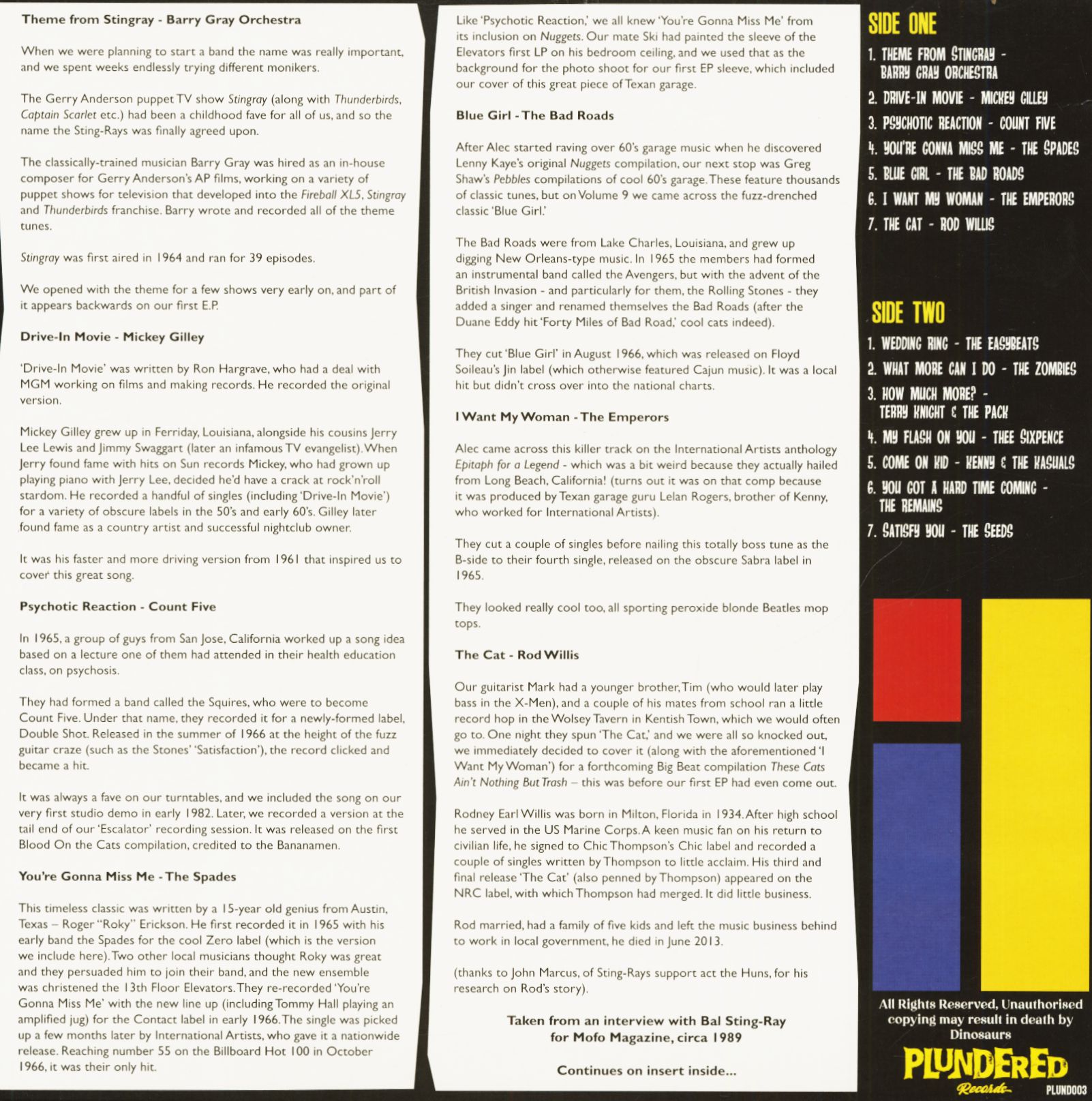 Various Plundered Vol.3 - The Sting-Rays Unstung (LP, Colored Vinyl, Ltd.)