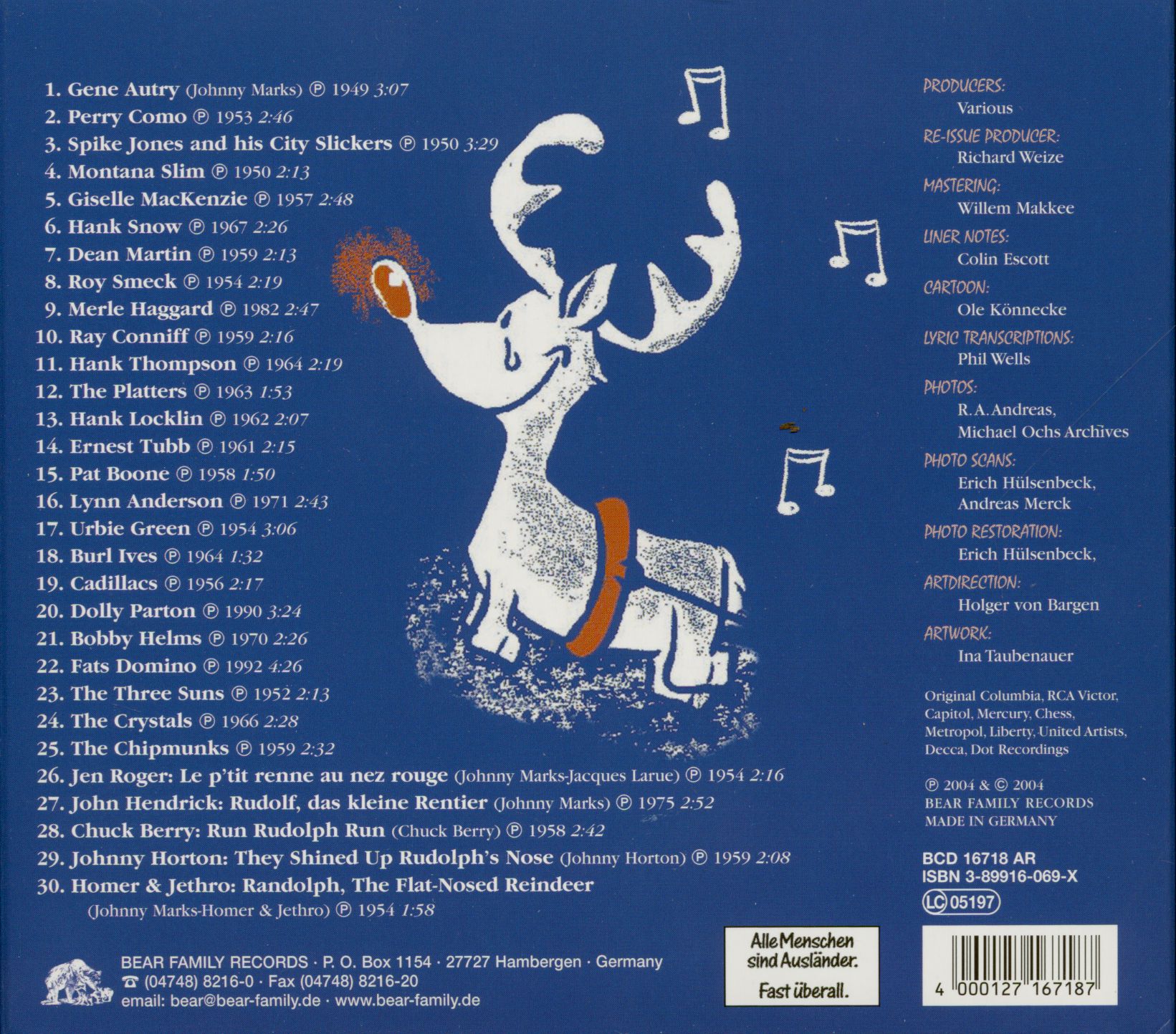 Dix ans plus tard , le frère -frère de mai , Johnny Marks, a écrit une chanson à propos de la création de mai , et c'était un fracas instantanée. Peut-être le dernier grand classique de Noël ! Maintenant, il reçoit le traitement de luxe : le succès, les suites , les versions étrangères , un échantillonnage des autres versions par des artistes aussi divers que Perry Como , Johnny Horton, et les Cadillacs . 30 chansons , l'histoire , et une bande dessinée par le célèbre caricaturiste allemand Ole Könnecke .