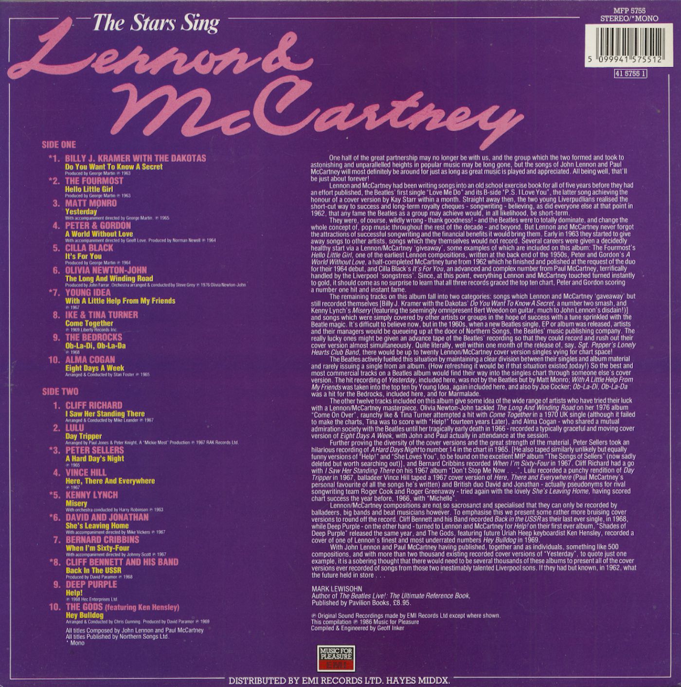 Various The Stars Sing Lennon & McCartney (LP)