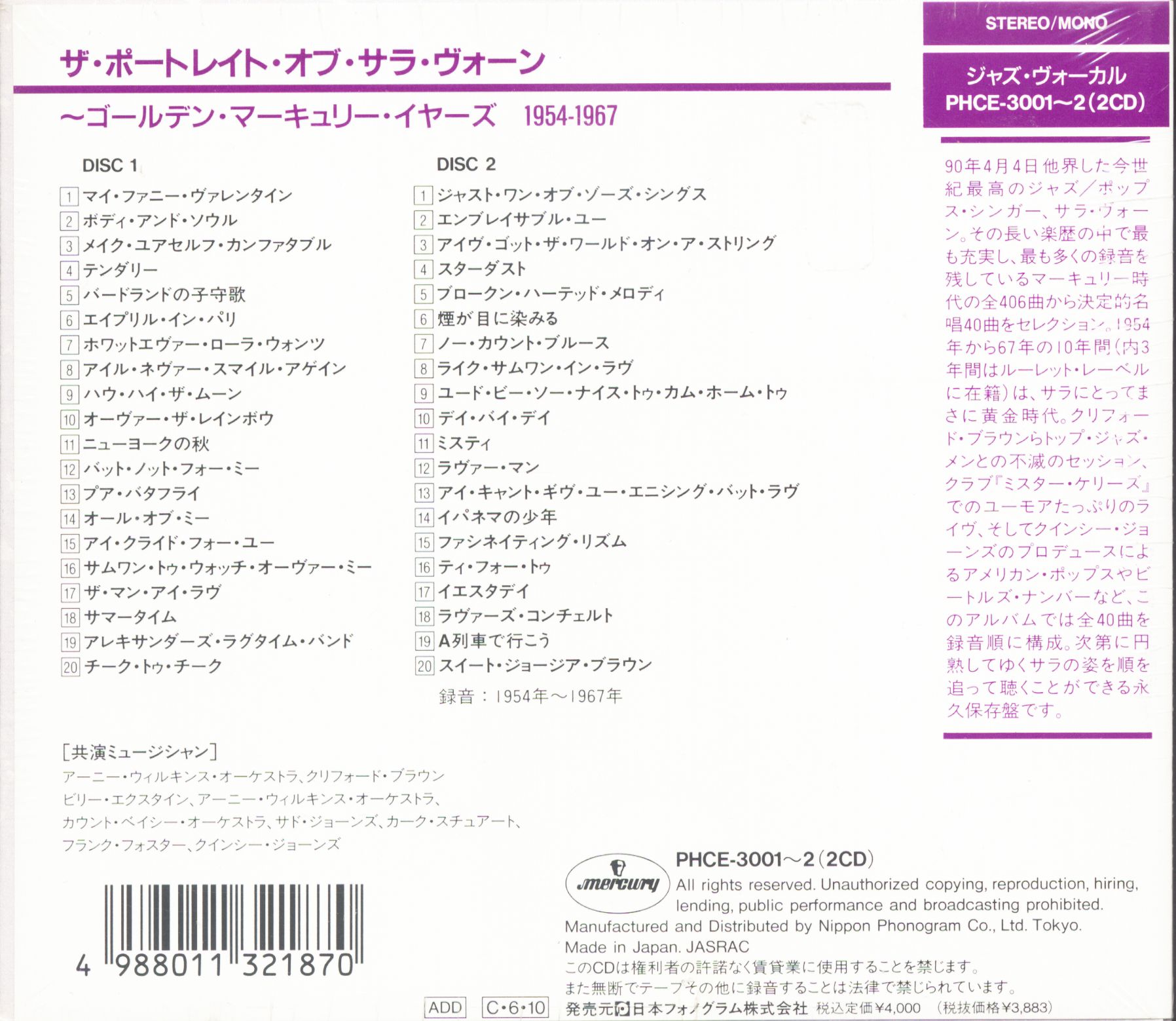Sarah Vaughan The Portrait Of Sarah Vaughan - The Golden Mercury Years (2-CD)