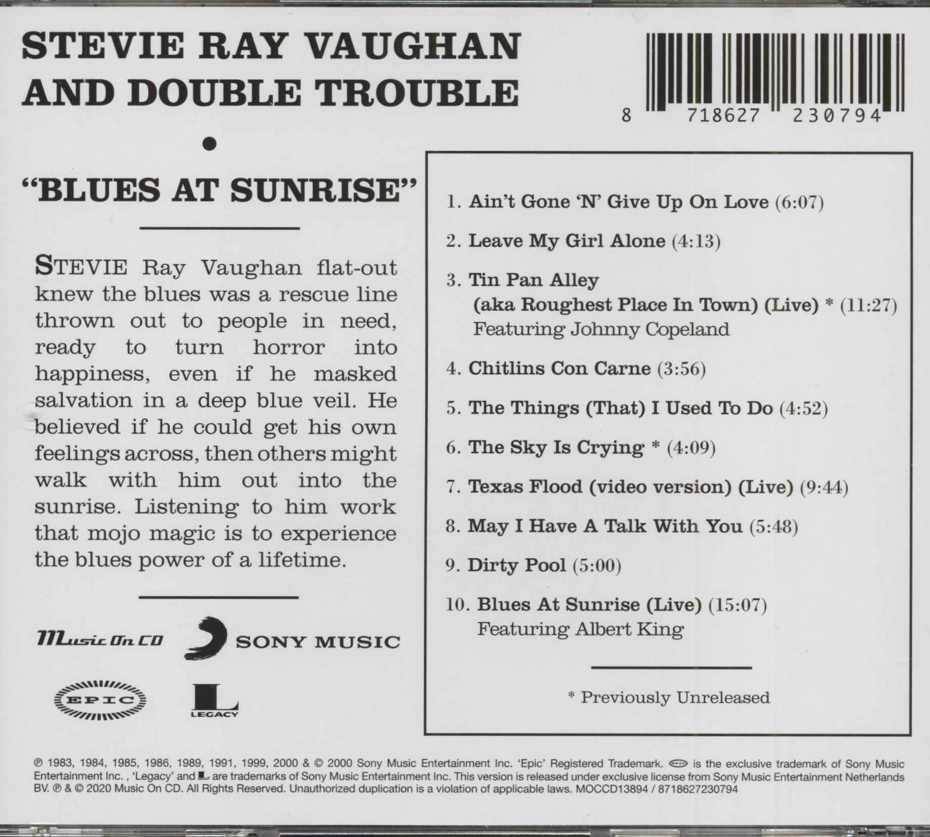 Stevie Ray Vaughan & Double Trouble Blues At Sunrise (CD)