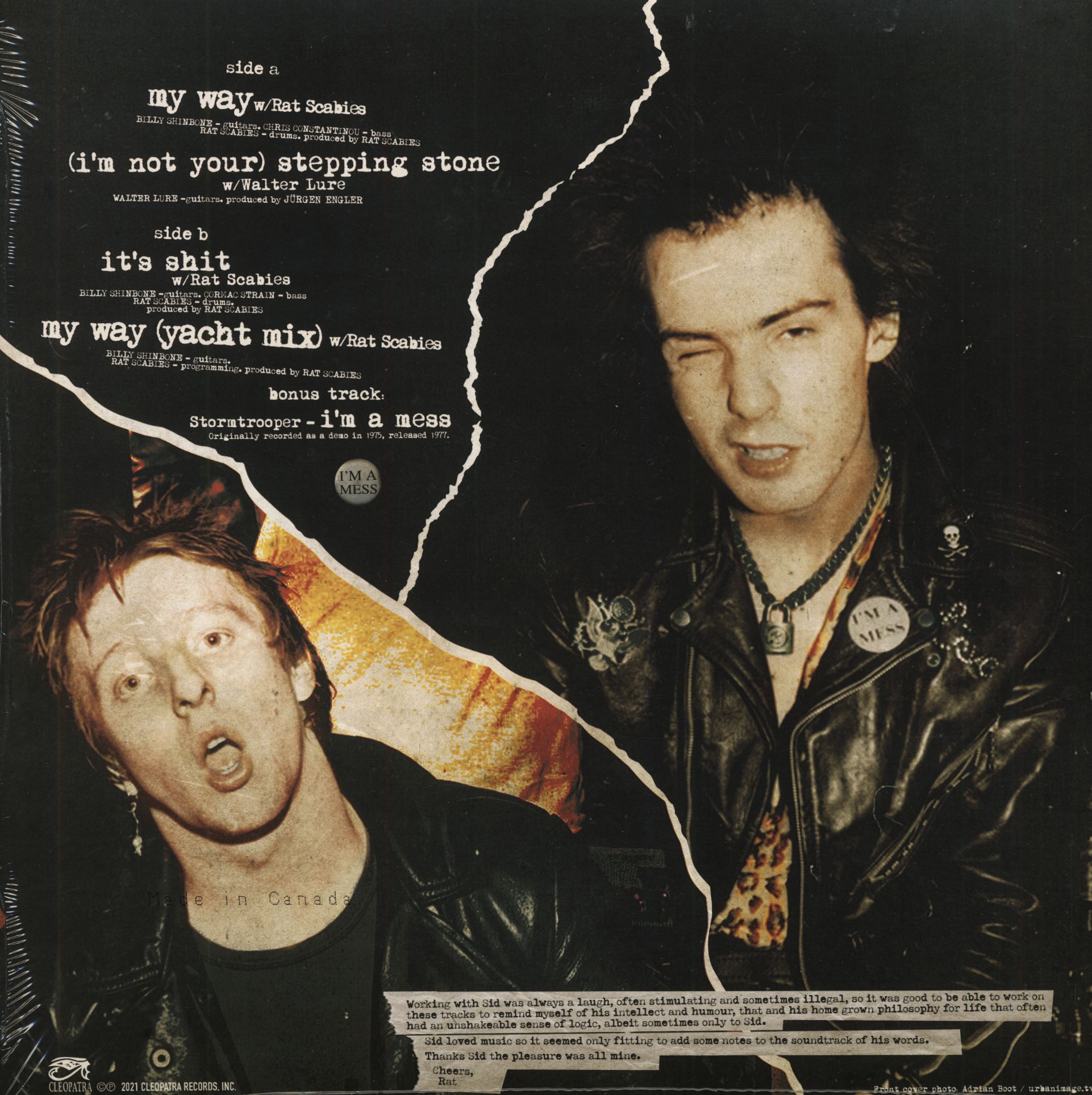 Sont également incluses 2 pistes uniques créées par Scabies - un remix de la chanson titre et une piste comprenant les voix de studio de Sid !