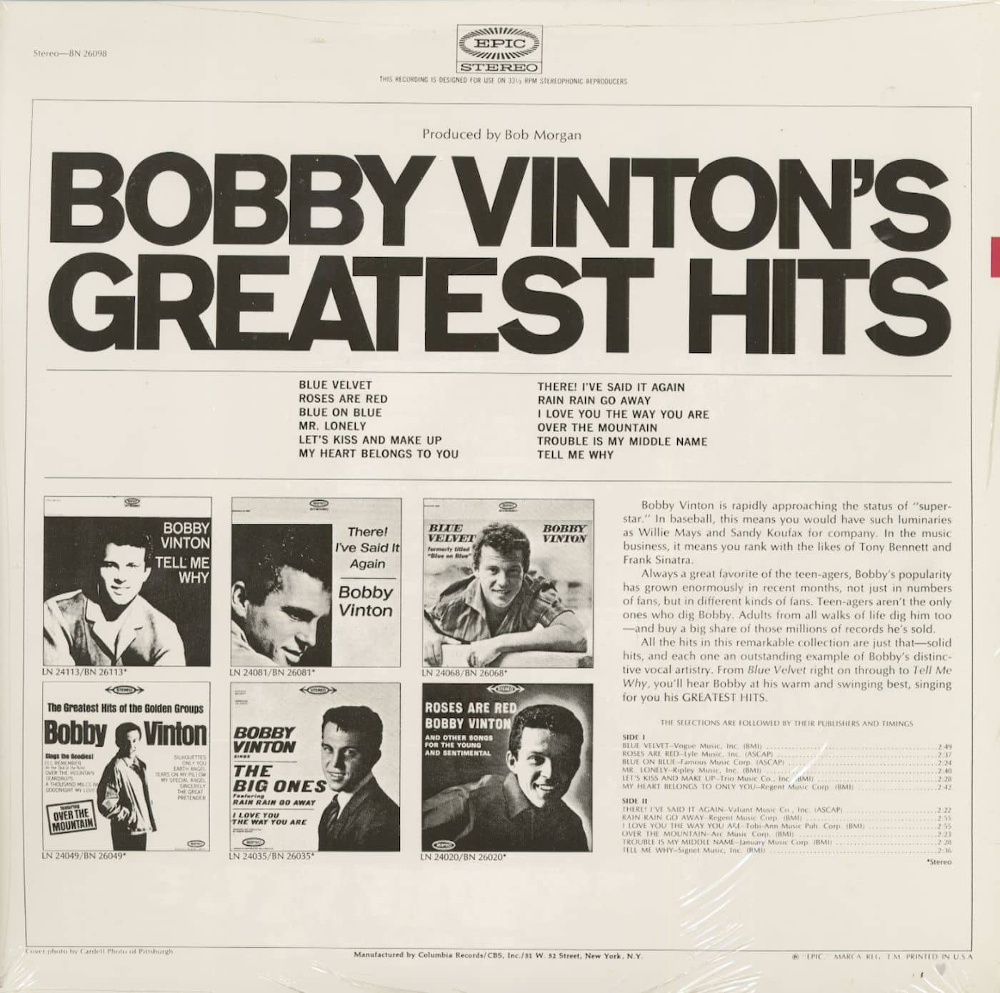 Bobby Vinton Bobby Vinton's Greatest Hits (Stereo) (LP)