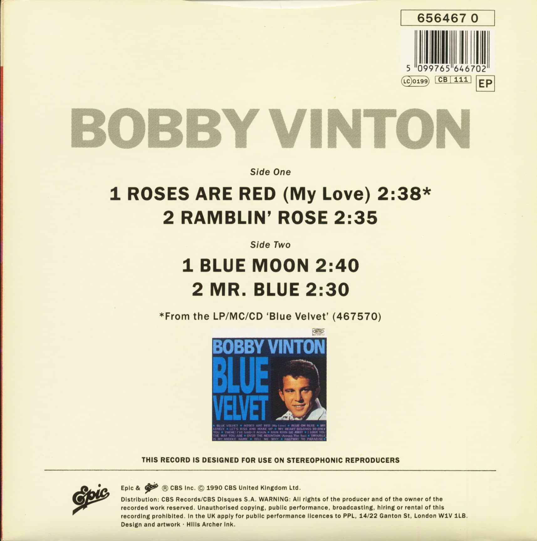 Bobby Vinton Roses Are Red (My Love) (7inch, EP, 45rpm, PS, SC)