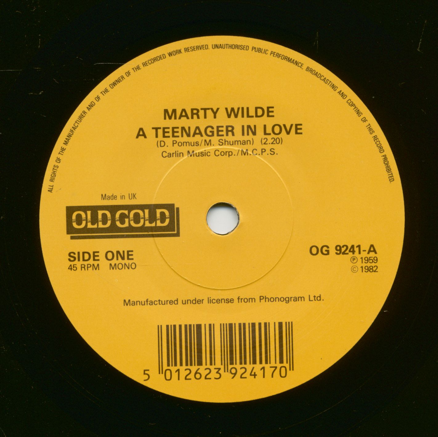 Marty Wilde A Teenager In Love - Sea Of Love (7inch, 45rpm, SC)