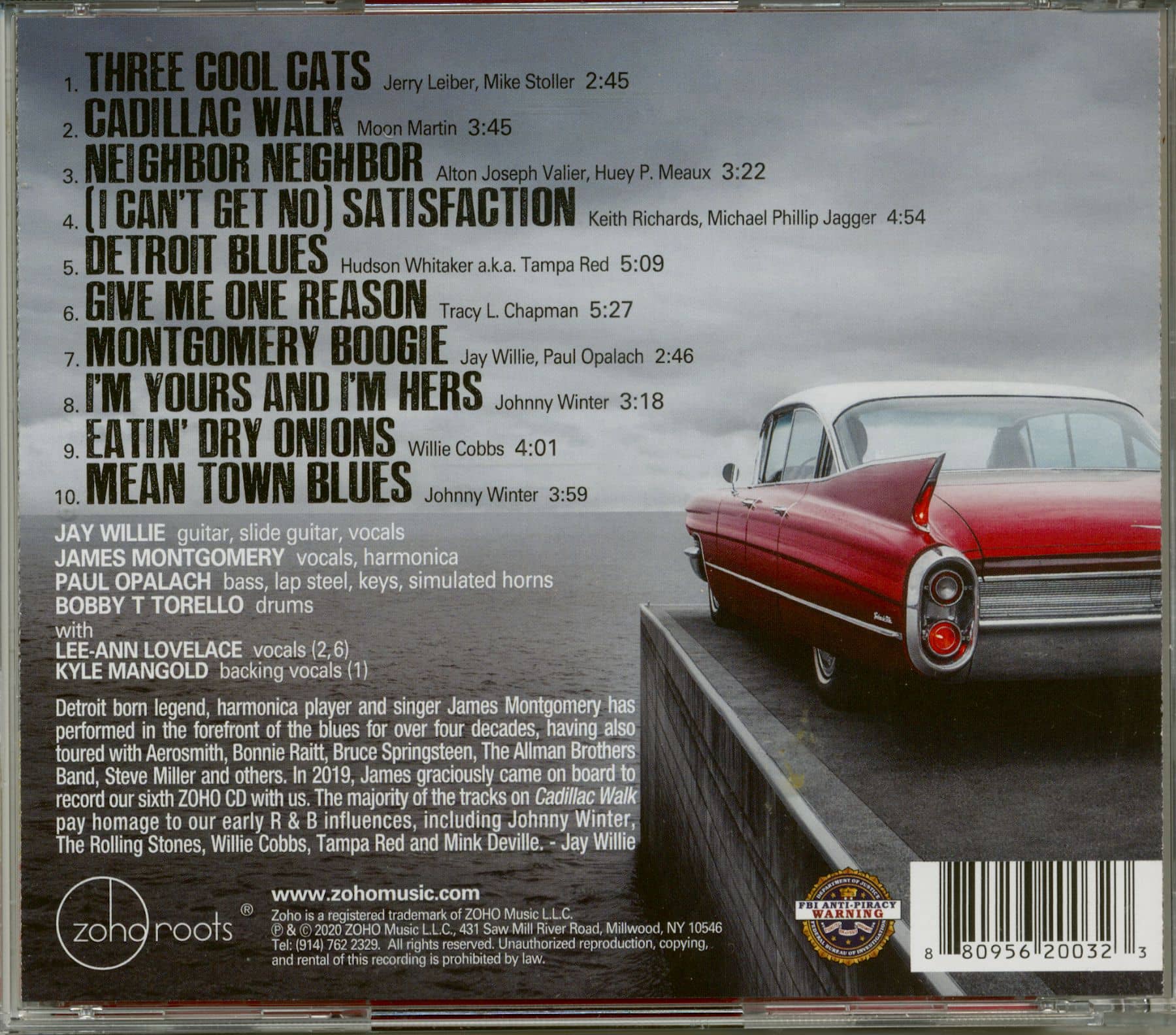 Légende née ? Detroit, l'as de l'harmonica blues James Montgomery a joué et tourné avec Aerosmith, Bonnie Raitt, Bruce Springsteen, les Allman Brothers, Steve Miller et d'autres. En 2019, James est venu ? bord pour enregistrer notre sixième CD ZOHO avec nous. Cadillac Walk rend hommage ? nos premières influences R & B, notamment Johnny Winter, les Rolling Stones, Willie Cobbs, Tampa Red et Mink Deville. -Jay Willie