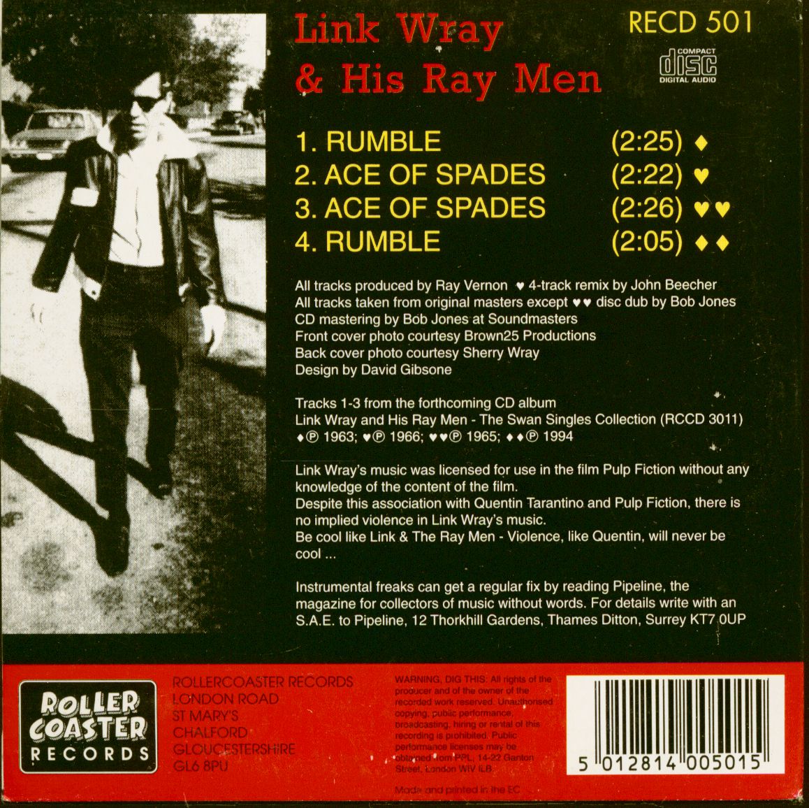 Link Wray Link Wray & His Raymen - Music From The Motion Picture 'Pulp Fiction' (CD EP)